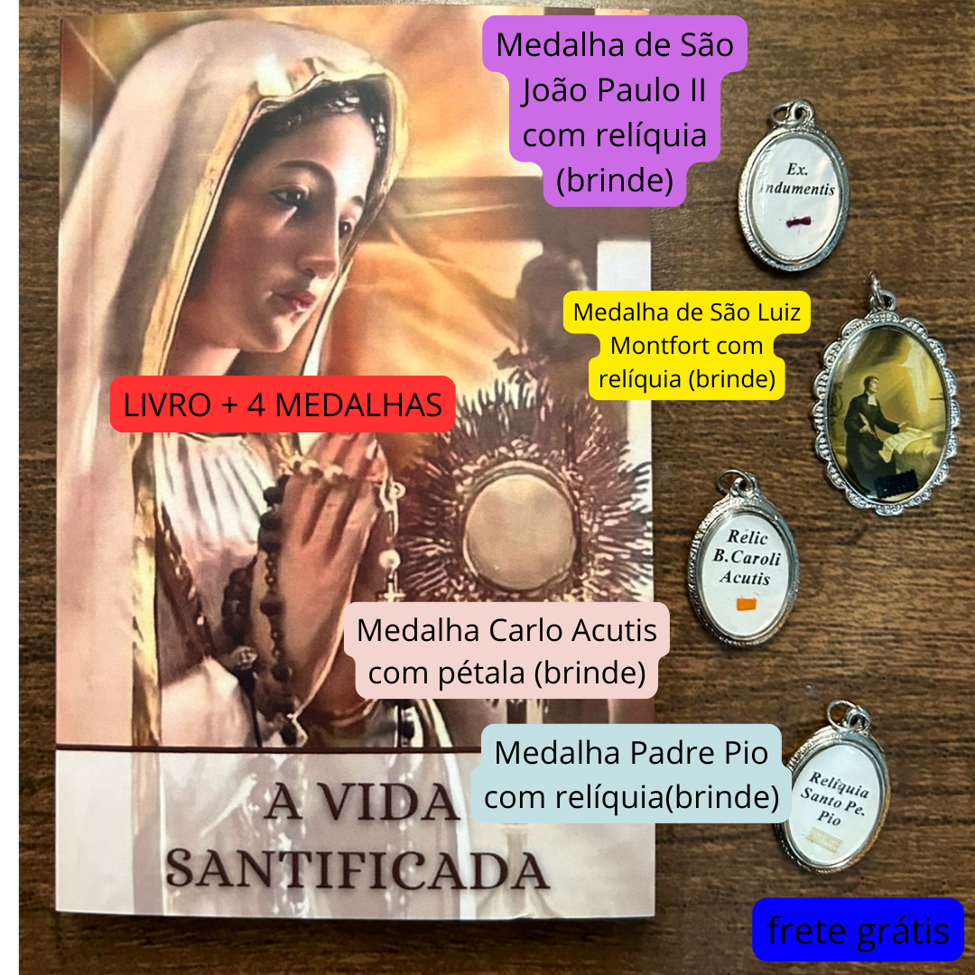 livro vida santificada mais 4 medalhas de santos COM RELÍQUIAS DE BRINDE