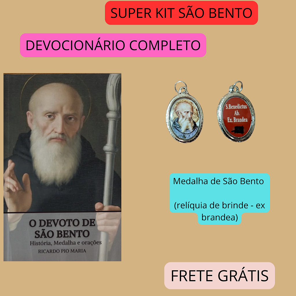 KIT SÃO BENTO- DEVOCIONÁRIO + MEDALHA DE SÃO BENTO (reliquia brinde ex brandea)